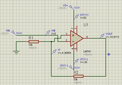 ولی تو بدون فیدبک و فیدبک مثبت شما مدارت به ازای تغیرات کوجک ولتاژ ورودی ، خروجی به اشباع میره که میشه اشمیت تریگر یا همون مقایسه کننده ! ( علت اینکه زود میره اشباع بهره زیاد اپ امپ در حدود 6000 هست ) ! و در معکوس کننده بهره میشه R2/R1-