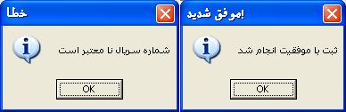 این برنامه با VB6 نوشته شده ، پک نشده و در صورتی که سریال درست رو وارد کنید، پیغامی با عنوان "موفق شدید" خواهد داد و در غیر این صورت با پیغام "خطا" رو به رو می شوید.