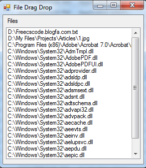 در سورس کد زیر خواهید دید که چگونه میشود فایل ها را از سیستم خود کشیده و در لیست باکس فرم خود