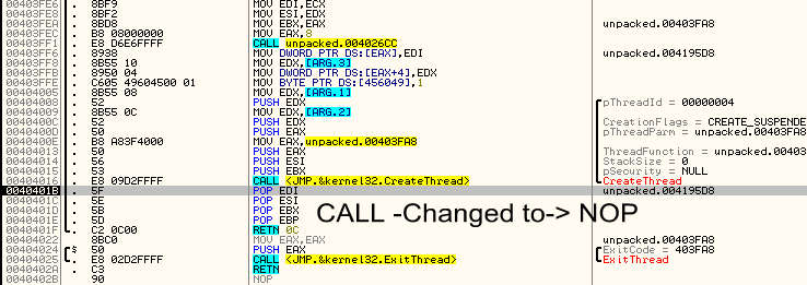و سوال بعديم اينه كه چه جوري آدرس 40401b رو پيدا كردي ؟؟اگر CreatThred رو سرچ كنم ميره داخل Kerne32.dll اما ميخوام ببينم كجاي برنامه صدا زده شده؟