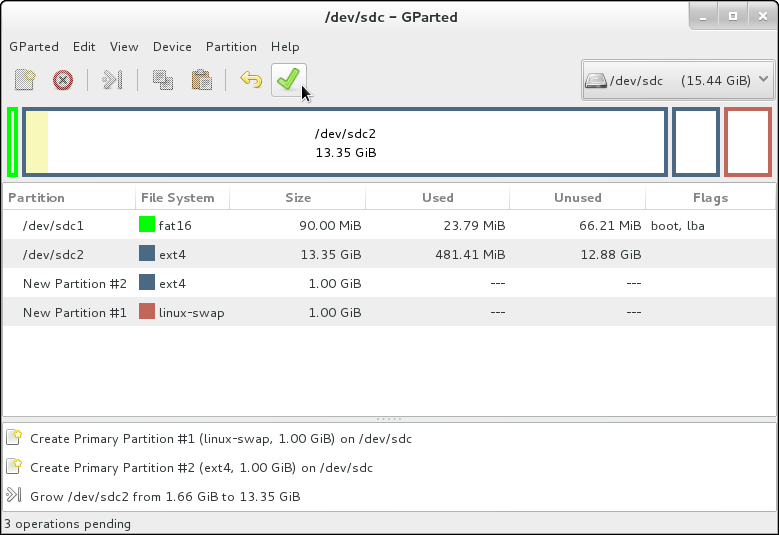 خوب در این قسمت می خوایم پارتیشن هارو بزرگ کنیم تا سایز SD بشن همچنین پارتیشن های جدید و Swap بر روی SD اضافه کنیم